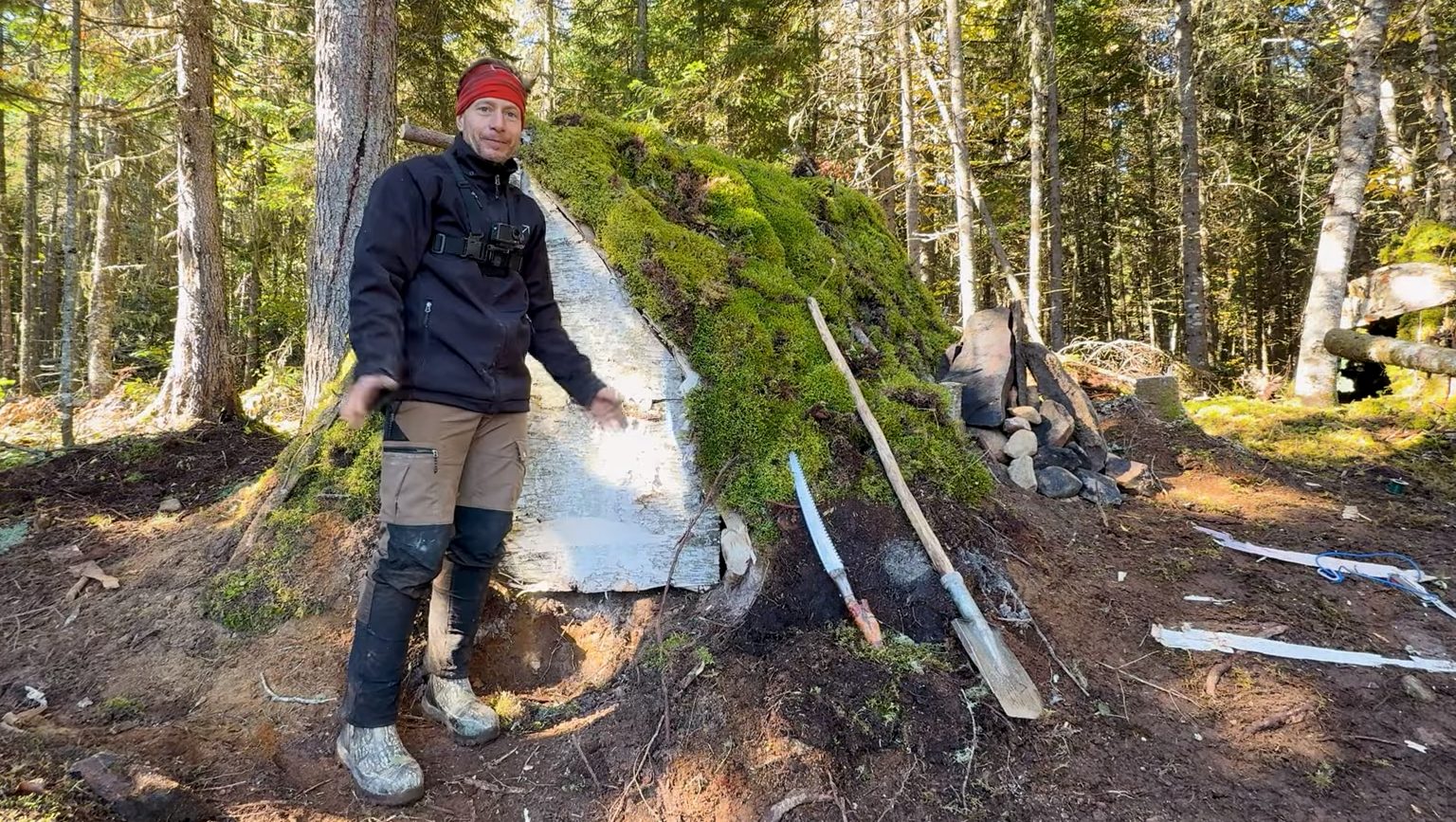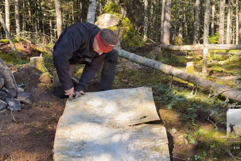 “La nature fournit tout ce dont nous avons besoin, mais encore faut-il savoir reconnaître les cadeaux qu’elle nous fait. J’ai commencé par me faire un abri avec du bois, de l’écorce de bouleau et de la mousse. Ensuite, il me fallait chasser, pêcher et trapper pour me nourrir. Rendu à cette étape-là, il y a une partie que tu peux contrôler et une autre que tu ne contrôle pas.”