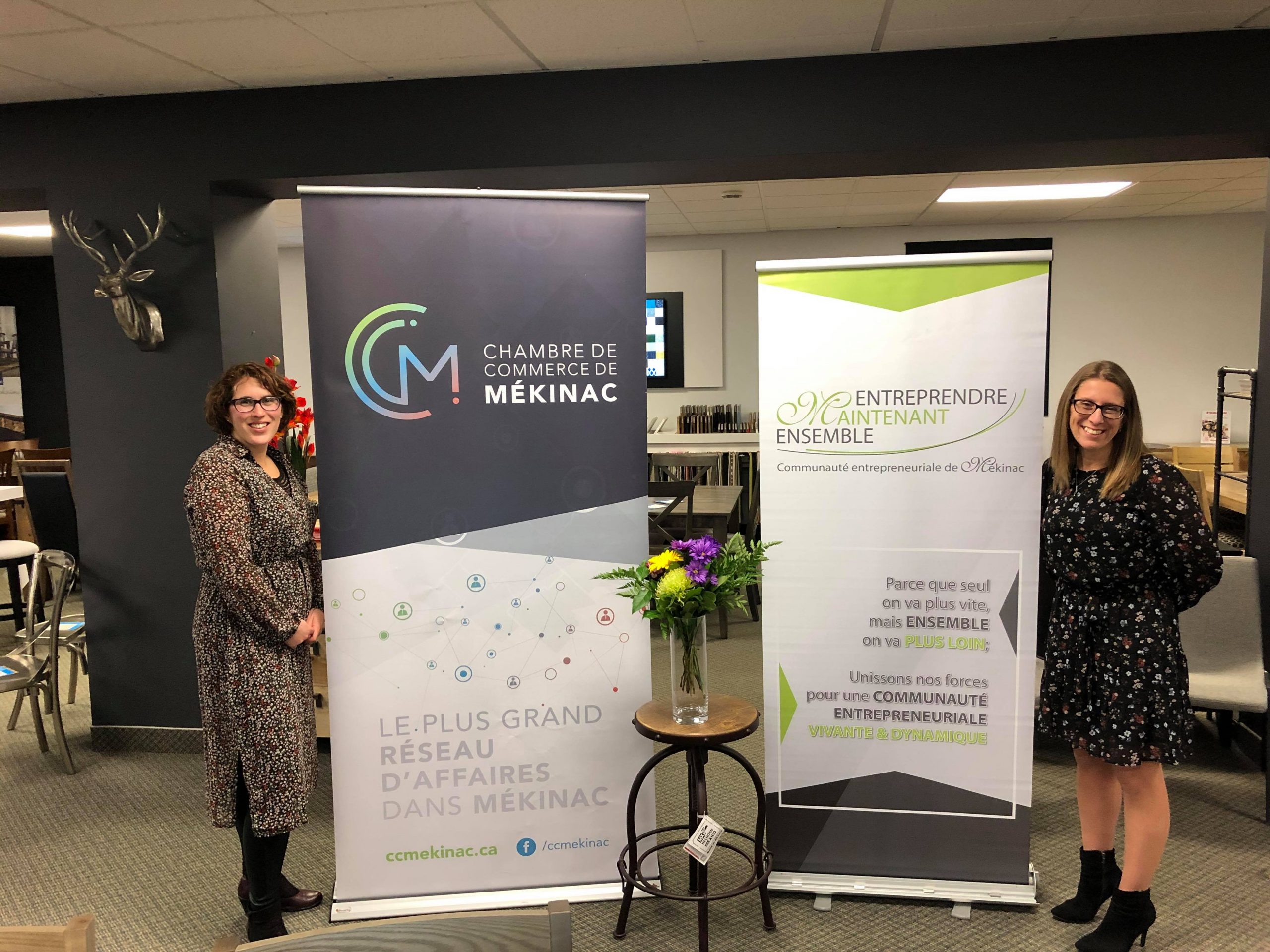 Ce 5 à 7 était une invitation à un univers partagé entre la Chambre de commerce de Mékinac et la Communauté entrepreneuriale de Mékinac. En plus du dévoilement de la vidéo reconnaissance, on a aussi dévoilé le calendrier du mois de l’entrepreneuriat.