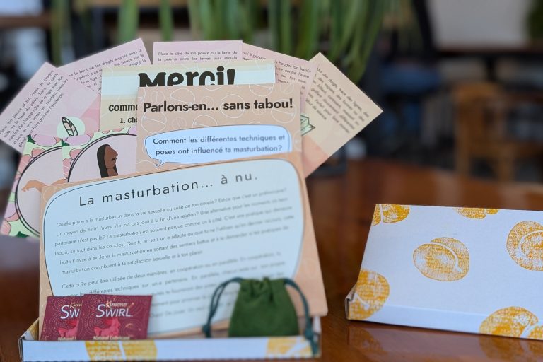 La toute première boite vient d’être lancée sous le thème de la masturbation. « -On a décidé d’aller avec un sujet vraiment plus de front pour commencer, pour interpeller les gens », souligne -Cléome. Les activités servent de guide pour sortir des habitudes et prendre le temps de se redécouvrir… -Dans cette boite, chaque participant est invité à tester, sur -soi-même ou sur un partenaire,16 techniques de masturbation et à explorer 8 positions de masturbation pour expérimenter le plaisir sous tous ses angles. L’objectif : se faire plaisir !