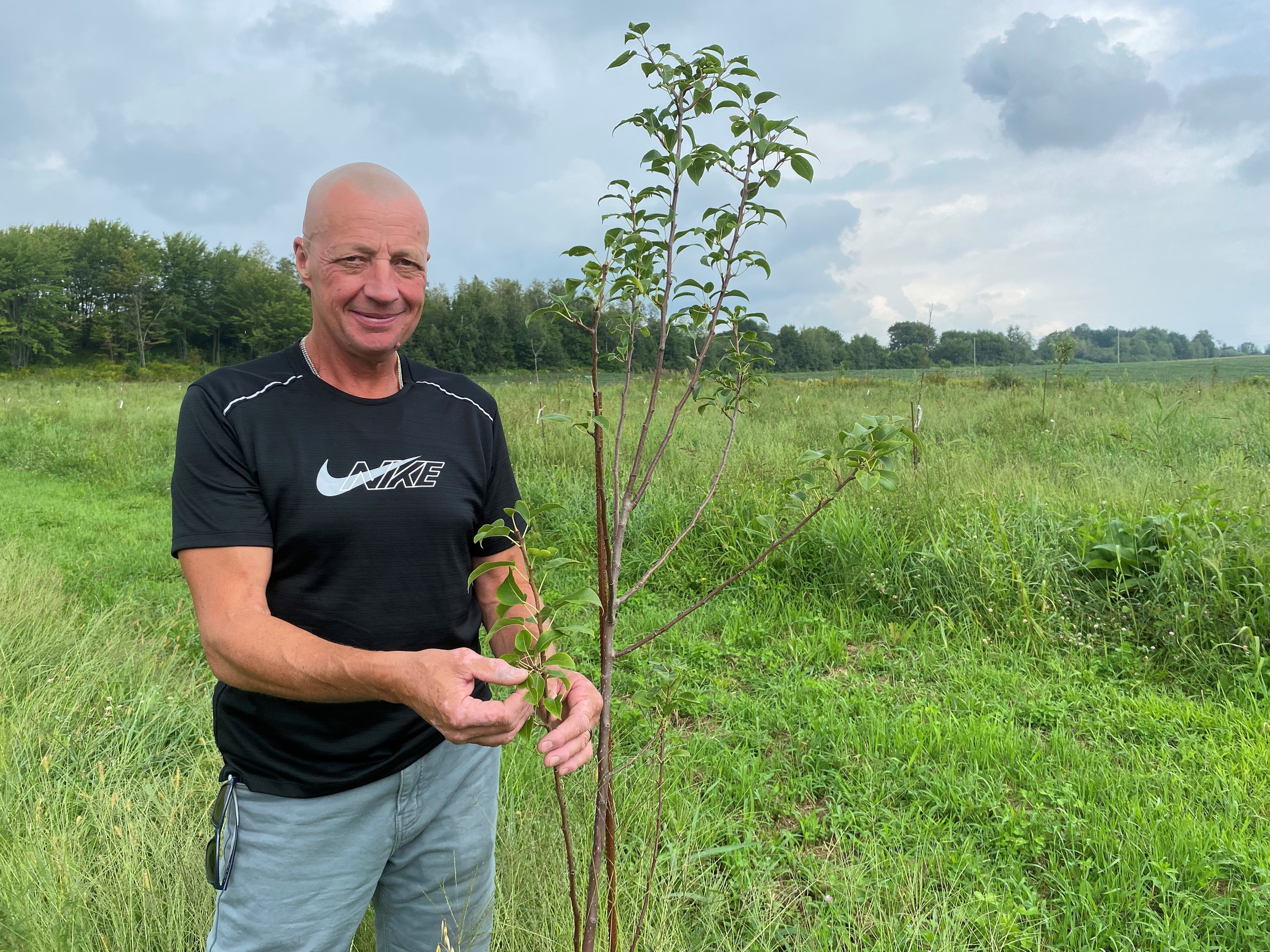 SAINTE-GENEVIÈVE-DE-BATISCAN. Benoit Magny, un éleveur de porcs de Sainte-Geneviève-de-Batiscan, est en train d’aménager le tout premier verger de poires de la région. Il a planté ses premiers arbres sur le rang Nord il y a près d’un an. On en compte maintenant 200 et plusieurs autres seront plantés sur la propriété dans les années à venir.