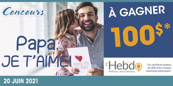Concours Concours Je t’aime papa! Du 11 au 20 juin 2021 Ce concours est terminé. Surveillez nos prochains concours!