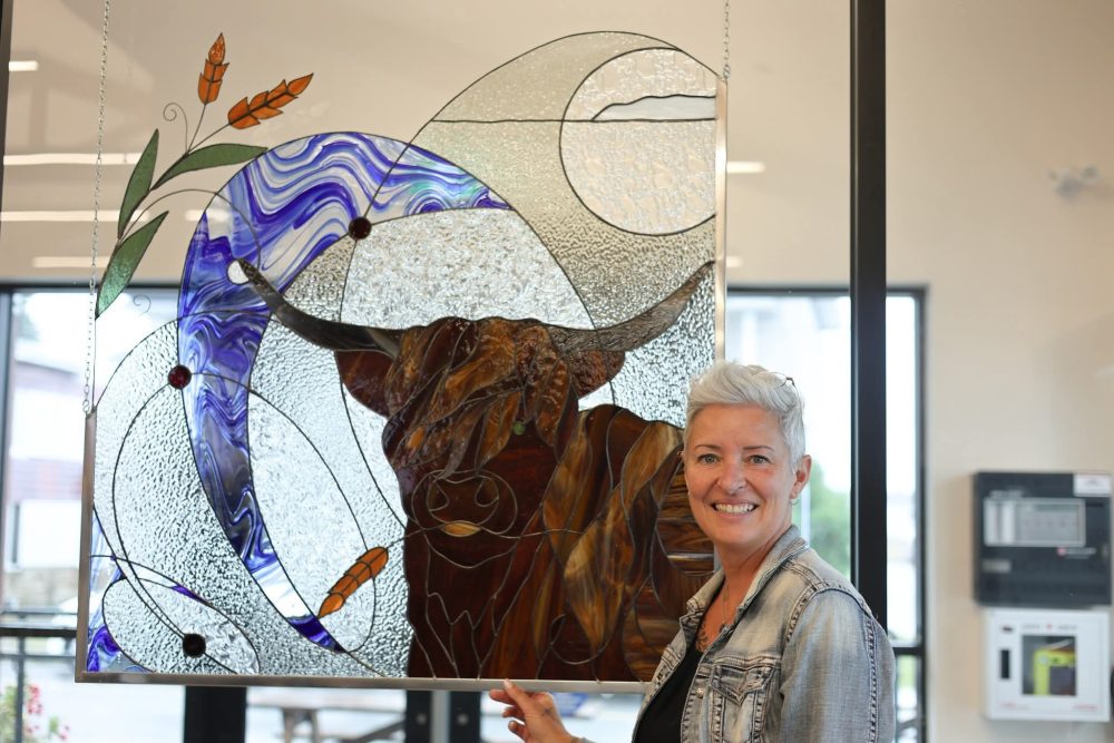SAINT-TITE. L’artiste vitrailliste Josée Hardy a eu une occasion en or de créer une œuvre d’envergure intitulée L’âme du troupeau. Exposée à la Ganterie du Festival Western de Saint-Tite, l’œuvre met en scène une vache Highland amalgamée à son propre univers. L’inauguration, qui s’est déroulée le 28 août dernier, tombait à point avec le festival qui commencera sous peu!