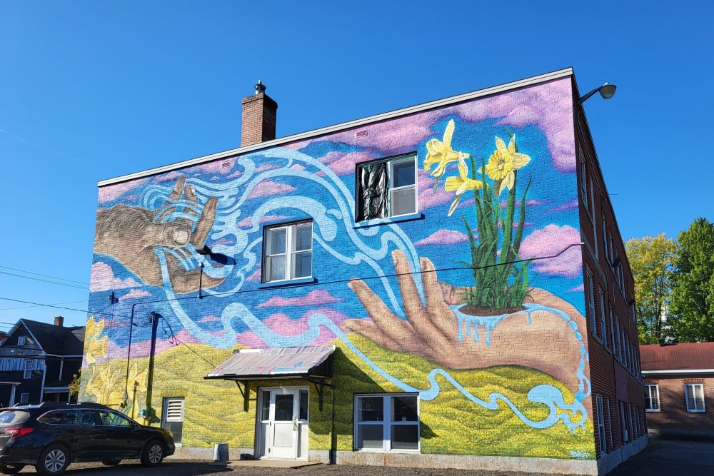 SAINT-NARCISSE. Le muraliste Sébastien Vigneault a réalisé dans les dernières semaines la murale Les Narcisses, une municipalité unifiée au 290, rue Principale à Saint-Narcisse.