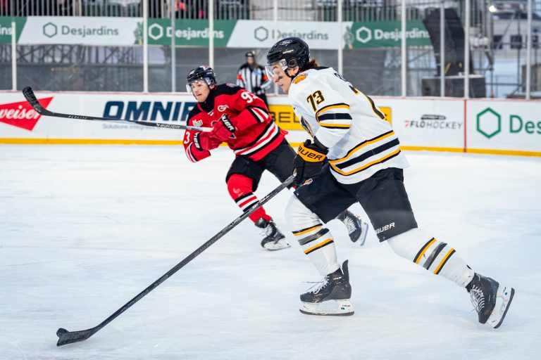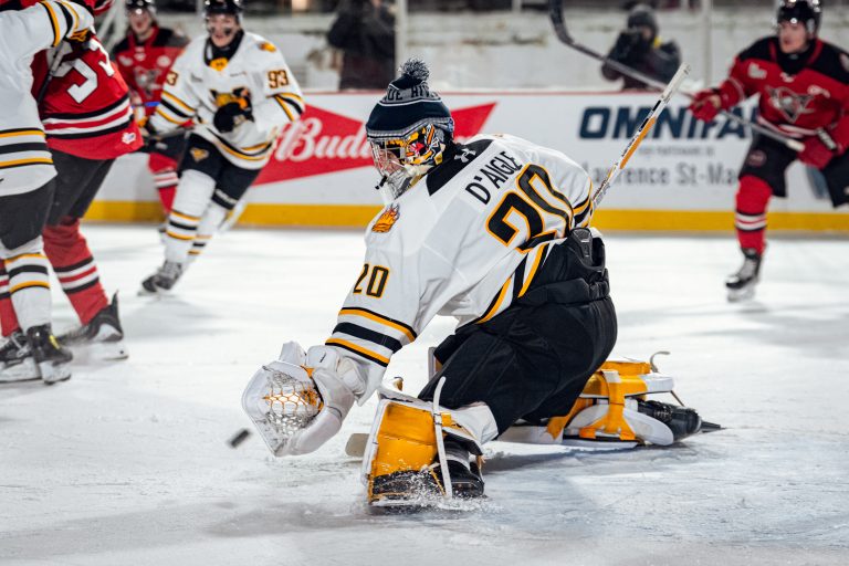 En troisième période, Yoan Tassé (4e et 5e) a ajouté deux buts pour le bataillon drummondvillois. Les deux réalisations du numéro 88 ont eu lieu près du filet, en jeu de puissance. Jesse Allecia, pour sa part, a amassé son troisième point de la partie. Owen Keefe a également amélioré sa fiche personnelle avec une deuxième mention d’aide. Les Voltigeurs ont terminé la rencontre avec 49 lancers en direction de Gabriel D’Aigle. Ce dernier a fait ce qu’il a pu, réalisant 44 arrêts.